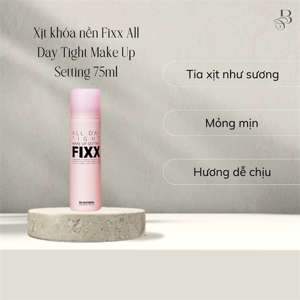 SO’Natural All Day Tight Makeup Setting Fixx bản hồng nhạt là xịt khóa nền nổi tiếng của Hàn Quốc, được mệnh danh là “xịt khóa nền quốc dân” nhờ khả năng giữ lớp trang điểm lâu đến 24 giờ, chống trôi – chống lem – chống xuống tông cực đỉnh.